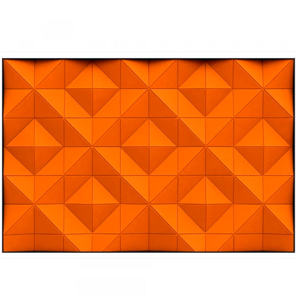 Рельефная геометрическая структура в форме пирамидальных модулей добавляет пространству динамику и глубину, а насыщенный оранжевый оттенок (Orange) наполняет помещение теплом, энергией и позитивной атмосферой.