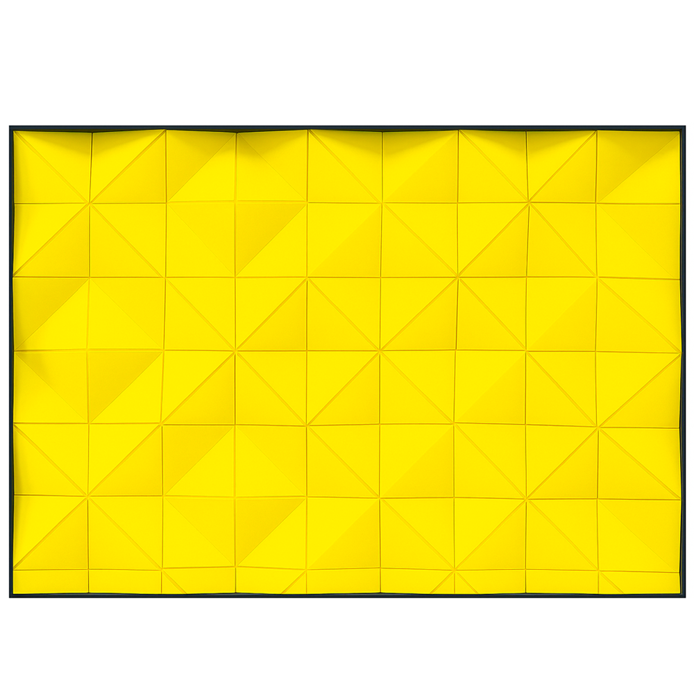 Благодаря геометрическому рельефу в форме пирамидальных модулей и яркому жёлтому оттенку, ERGO Vibe Yellow создаёт динамичную атмосферу и визуальный акцент в любом интерьере.