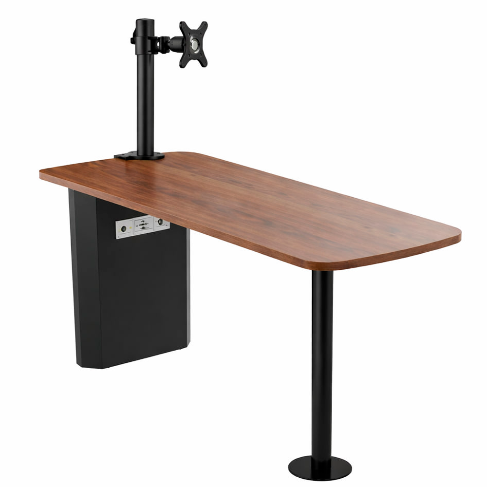 Стол отличается прочной конструкцией и устойчивой фиксацией, что особенно важно при ежедневной эксплуатации внутри акустических кабин. Деревянная столешница с тёмным основанием подчёркивает премиальный и строгий характер интерьера, делая рабочее пространство более собранным и профессиональным. Конструкция оптимизирована по габаритам, чтобы не перегружать пространство внутри кабины и сохранить свободу движений.