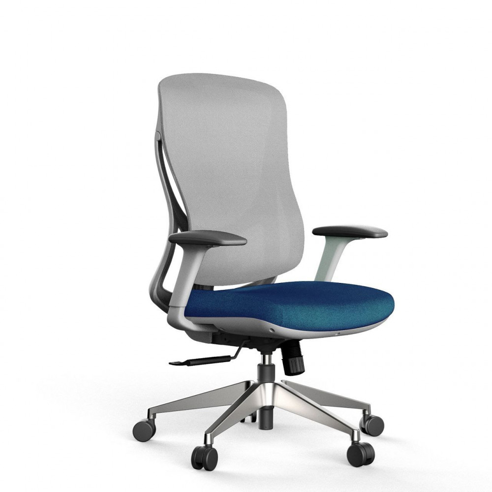 Яркое сочетание серого и синего цветов (Gray+Blue, W-DB02&BP-MP08) делает модель стильным акцентом в офисном интерьере, добавляя рабочему пространству свежести и динамики.