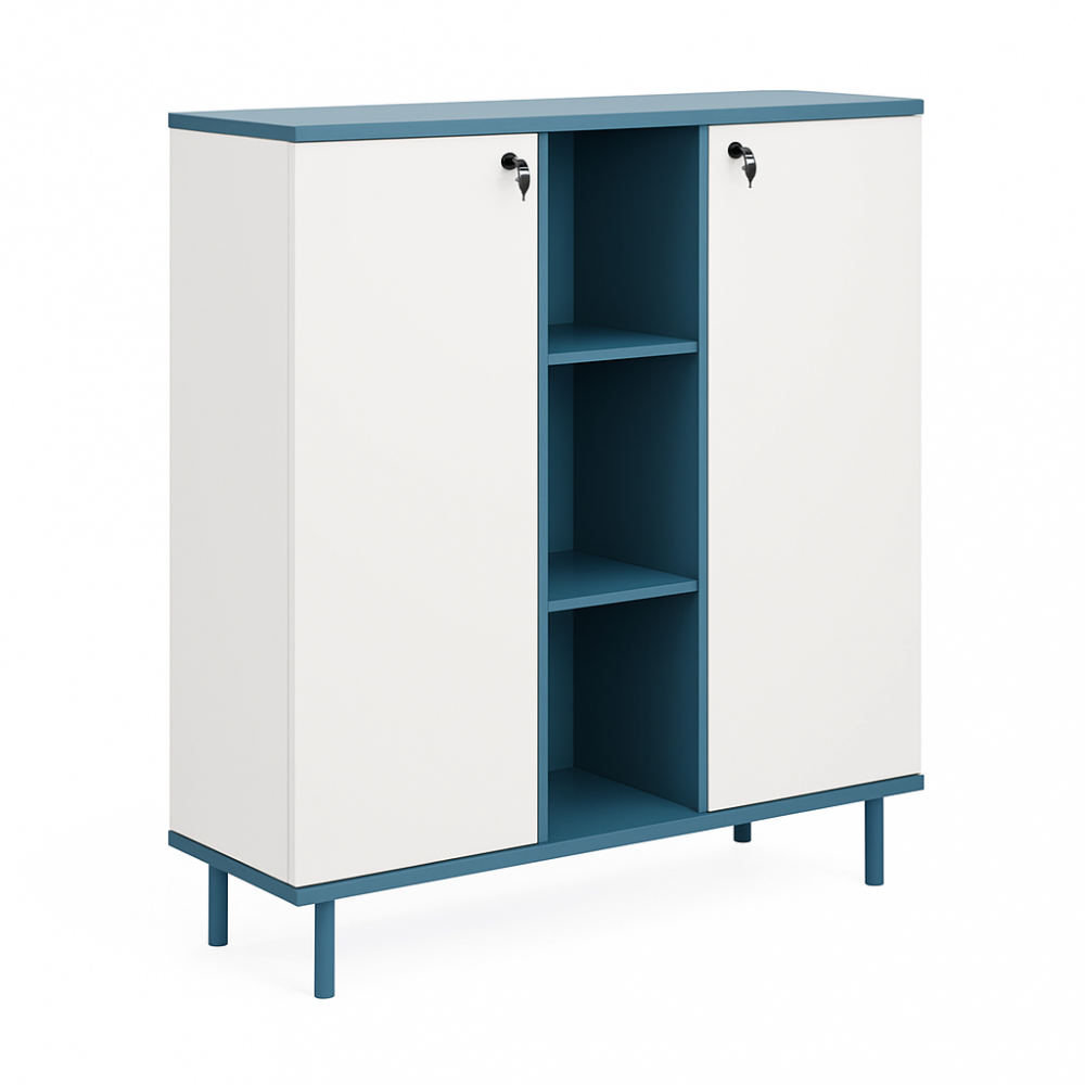 Приобретите офисный шкаф KANO Magic-2 (FMG30-2.12) Blue&White (CF05) и наслаждайтесь организованным и стильным рабочим пространством, создавая комфорт и порядок в вашем офисе!