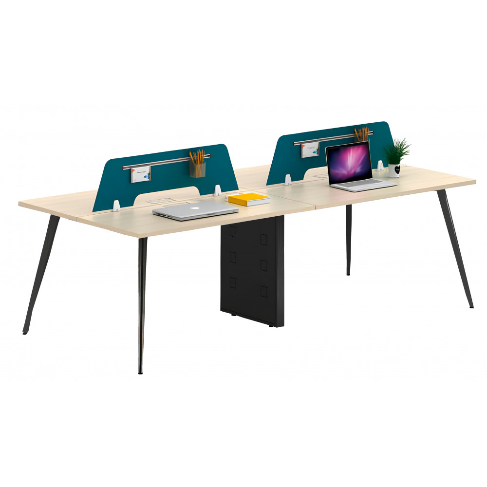 Стол представляет собой бенч-систему, которая позволяет эффективно использовать офисную площадь, формируя единое рабочее пространство. Прочная конструкция и устойчивое основание обеспечивают надёжность даже при интенсивной ежедневной эксплуатации. Большая рабочая поверхность позволяет удобно разместить компьютеры, офисную технику и рабочие аксессуары каждого сотрудника.