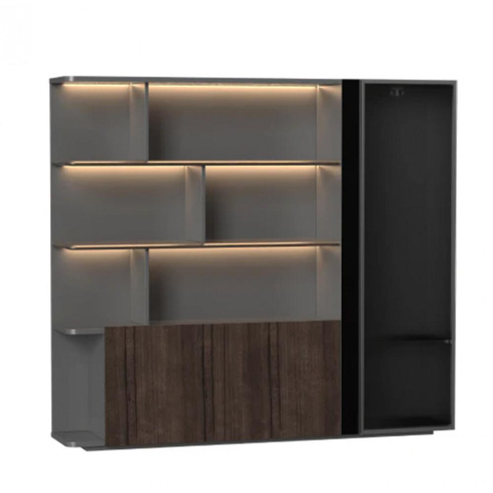 KANO Gran (MGR90.26) – это стильный и вместительный шкаф, разработанный для офисов руководителей и премиальных рабочих зон. Его глубокий коричневый оттенок (CY20) придает интерьеру статусность и солидность, а продуманная конструкция обеспечивает удобство хранения.