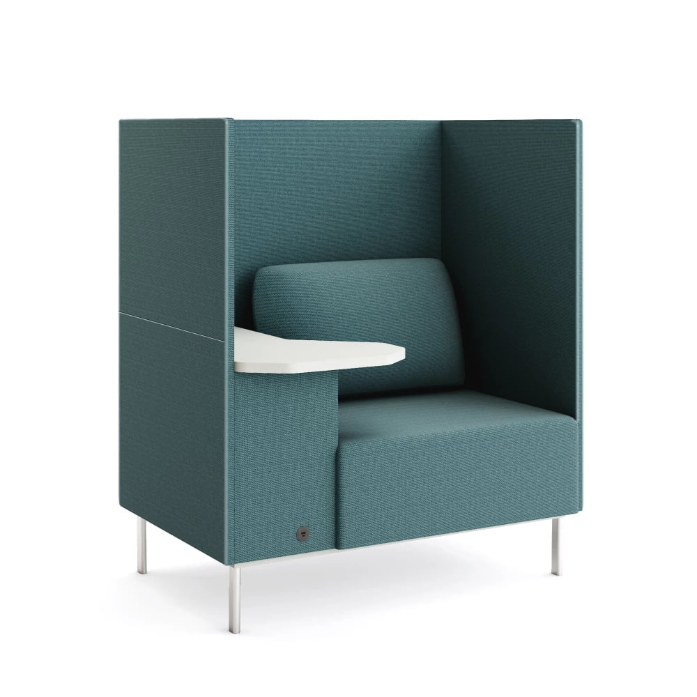 Обивка выполнена из плотной звукопоглощающей ткани, благодаря чему диван обладает акустическими свойствами — он гасит посторонние шумы и делает речь более разборчивой. Это особенно важно для переговорных зон, где важно слышать и быть услышанным.
