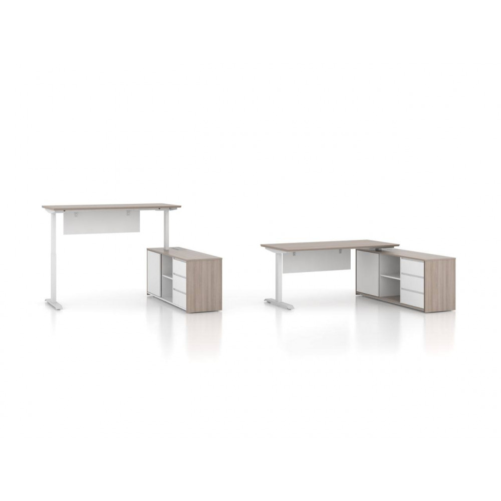 Белая столешница в сочетании с минималистичным дизайном делает стол универсальным решением для любого современного офиса. Высококачественный мотор обеспечивает плавную и бесшумную работу, а надёжная металлическая конструкция гарантирует устойчивость при любой высоте.