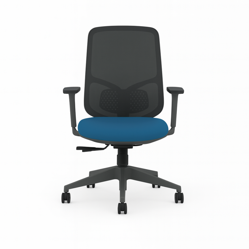 KANO Y2 MB (EY262.SW) Black + Blue Seat — это современное офисное кресло со средней спинкой (Mid Back), сочетающее эргономику, стильный дизайн и практичность. Универсальная чёрная основа в комбинации с ярким синим сиденьем делает модель выразительным элементом интерьера и подчёркивает статус современного офиса.