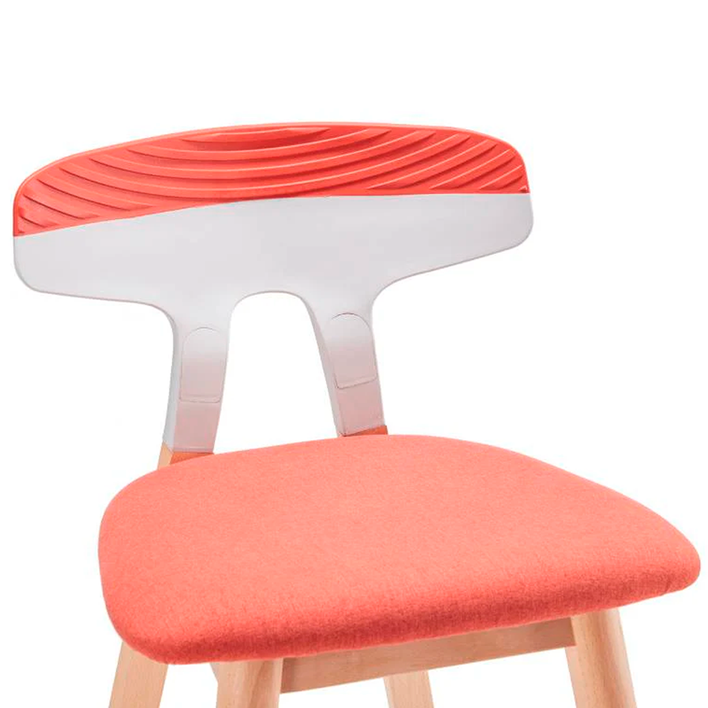 Спинка и сиденье выполнены в эффектном красном оттенке, создающем атмосферу уюта и динамики. Удобная форма обеспечивает комфорт даже при длительном сидении, а прочный каркас из натурального дерева гарантирует долговечность и устойчивость.