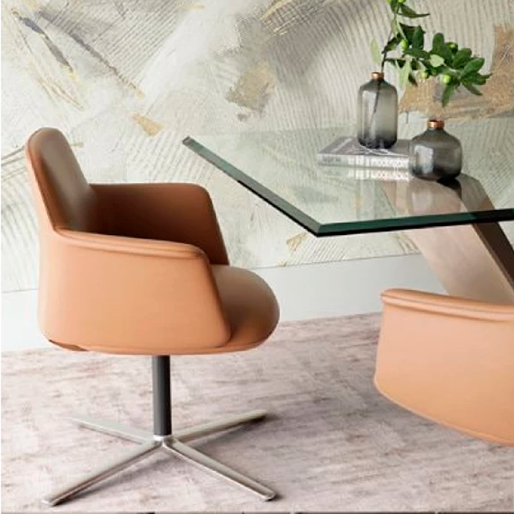 Хромированные металлические ножки придают креслу лёгкость и устойчивость, а подлокотники с мягкими накладками повышают комфорт при длительной работе. Конструкция отличается надёжностью и рассчитана на ежедневное использование в условиях интенсивной эксплуатации.