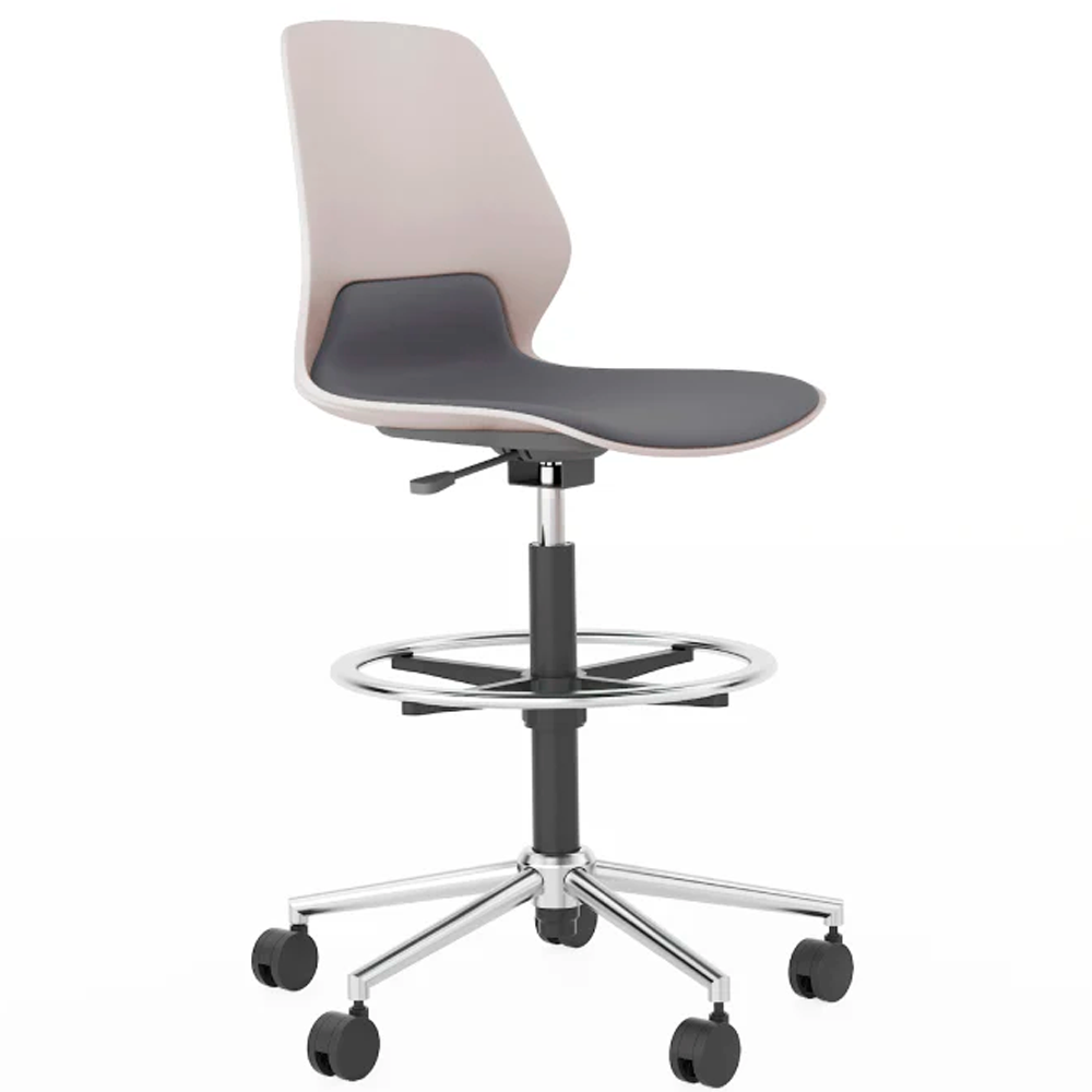 Стул изготовлен из прочного матового пластика PP и может быть выполнен с настраиваемой тканевой обивкой. Он оснащён регулируемой хромированной подножкой и газлифтом, обеспечивая индивидуальную поддержку и долговечность.