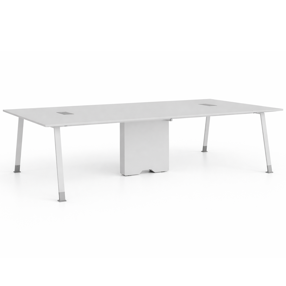 Просторная столешница в белом цвете создаёт ощущение чистоты и визуальной лёгкости, а строгая геометрия конструкции подчёркивает современный стиль интерьера. Модель разработана с учётом интенсивной эксплуатации и подходит для проведения деловых встреч, презентаций и командных обсуждений.