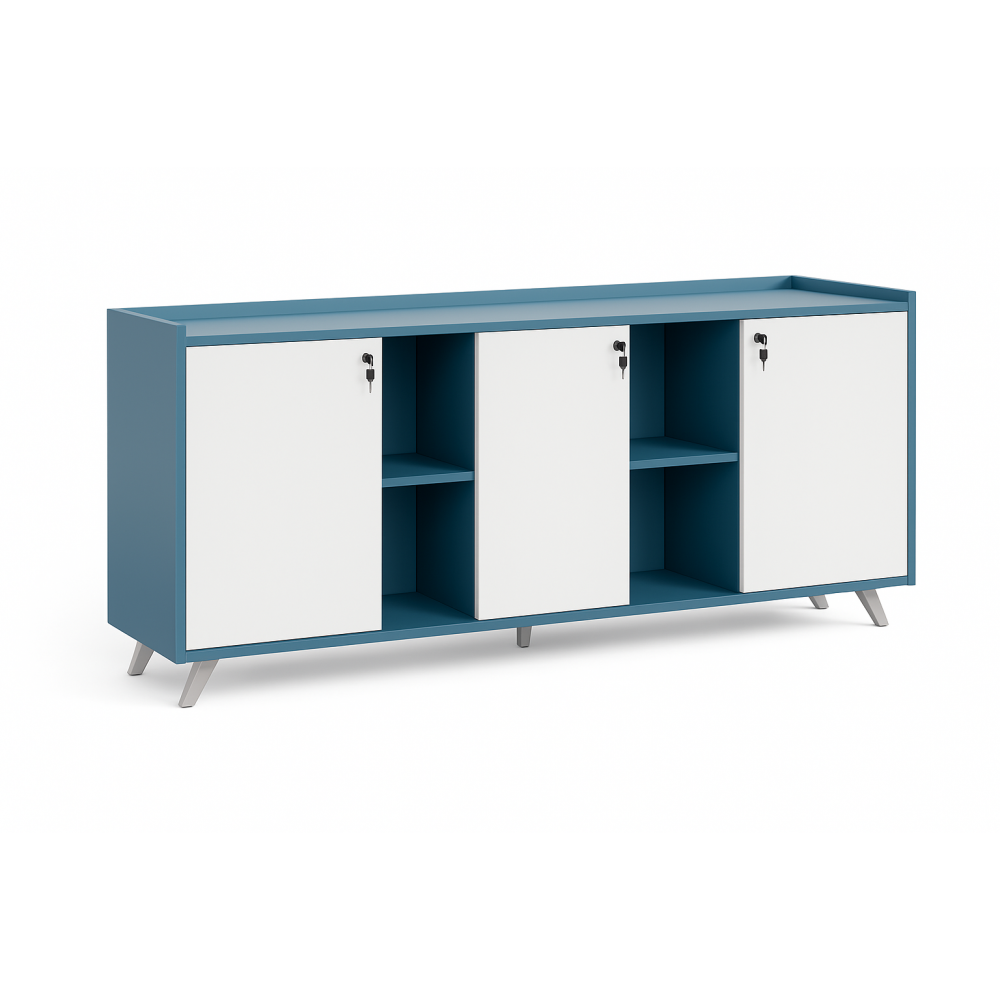 - Современный дизайн: Сочетание синего и белого цветов придает шкафу свежий и элегантный вид, который легко интегрируется в любой офисный интерьер.