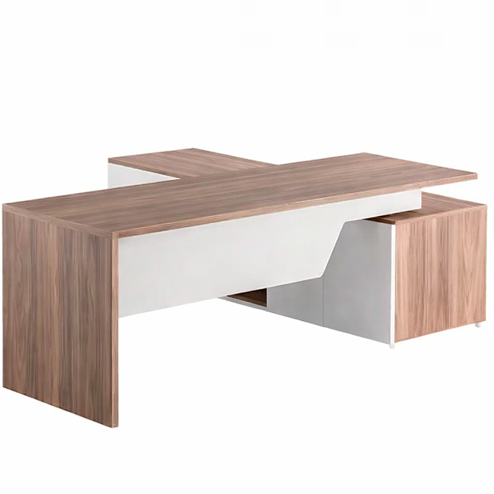 ERGO Paris (SM) — это современный стол для руководителя, сочетающий в себе элегантный дизайн, функциональность и визуальную лёгкость. Контраст белых элементов и тёплой текстуры ясеня шимо создаёт сбалансированный, статусный образ, который идеально вписывается в современные кабинеты руководителей и представительские офисные пространства.