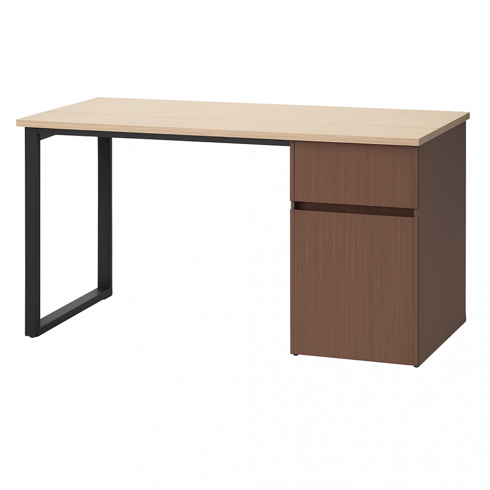 Стол выполнен из качественных материалов с текстурой под натуральное дерево — Легно Табак / Жексон, что придаёт интерьеру теплую и профессиональную атмосферу.