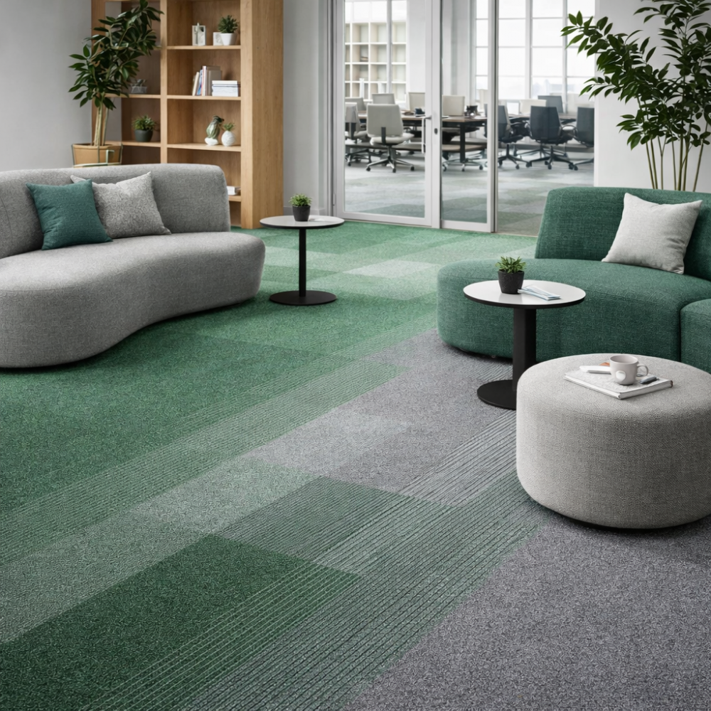 Оттенок Cool Passage формирует спокойную рабочую атмосферу и визуально структурирует пространство. Линейная текстура помогает создавать направление в интерьере и одновременно маскирует следы эксплуатации, что особенно важно для open space и зон интенсивного движения.