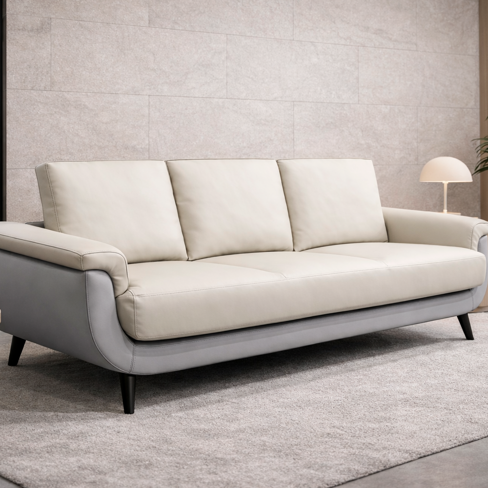 Просторное сиденье позволяет с комфортом разместиться трём людям, а мягкие подушки спинки поддерживают удобную посадку во время ожидания или неформальных встреч. Нейтральный серый цвет подчёркивает универсальность модели и легко сочетается с различными интерьерными стилями — от modern до business.