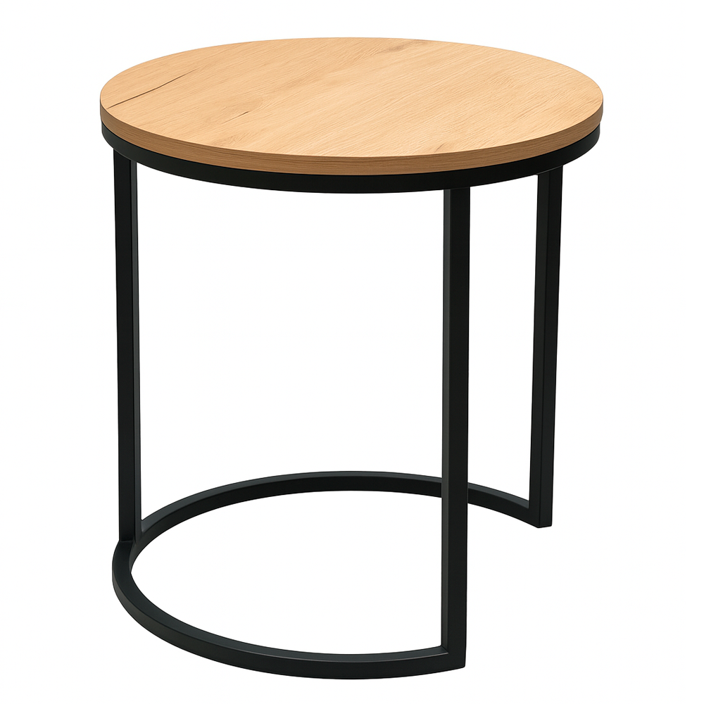 Круглая столешница из качественного ЛДСП устойчива к царапинам, нагрузкам и повседневному использованию. Металлическое основание изготовлено из прочного профиля с матовым чёрным покрытием, которое сохраняет внешний вид в течение долгих лет.
